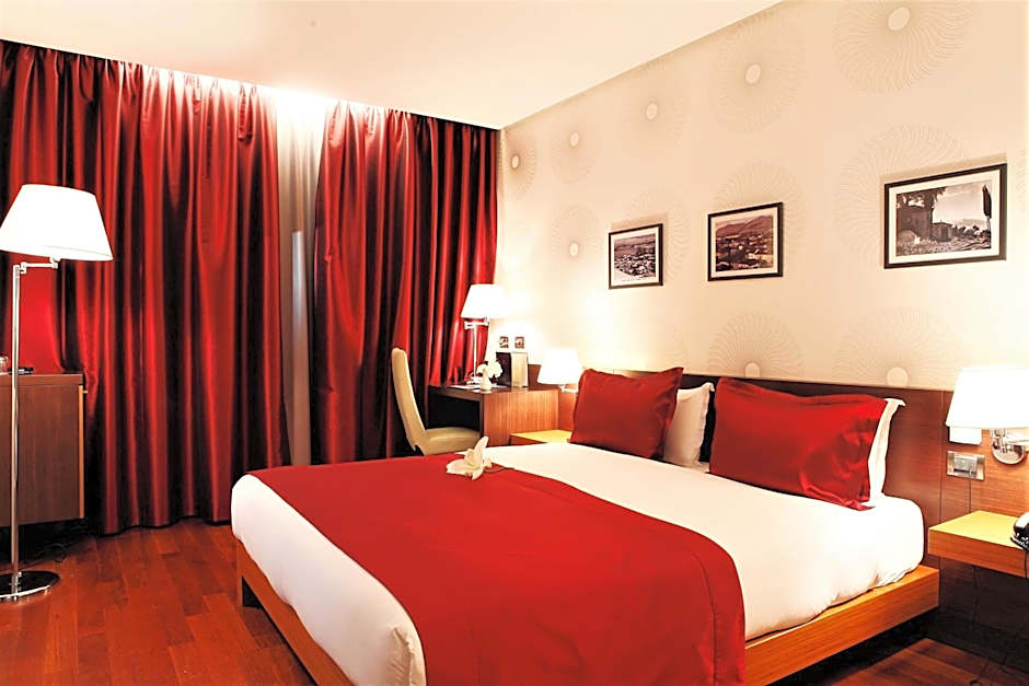 Deluxe Rooms are equipped with air-conditioning, contemporary furniture, wooden floor, worktable, smart TV and a mini-bar. Some room offer views over Tirana City Center. Private bathroom provides a shower or a bath tub.